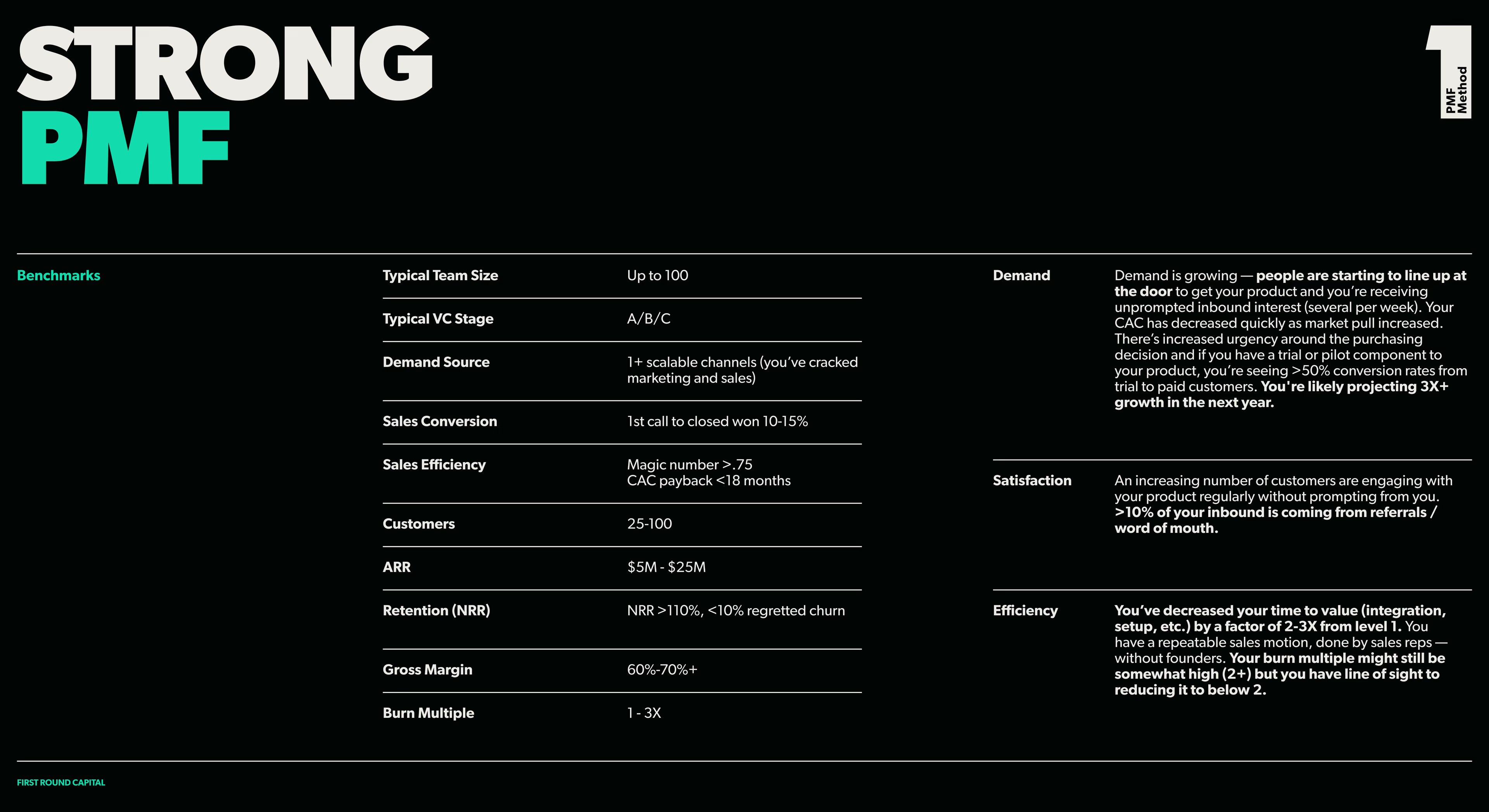 The textbooks will tell you to look for these indicators to tell if you’ve achieved PMF: